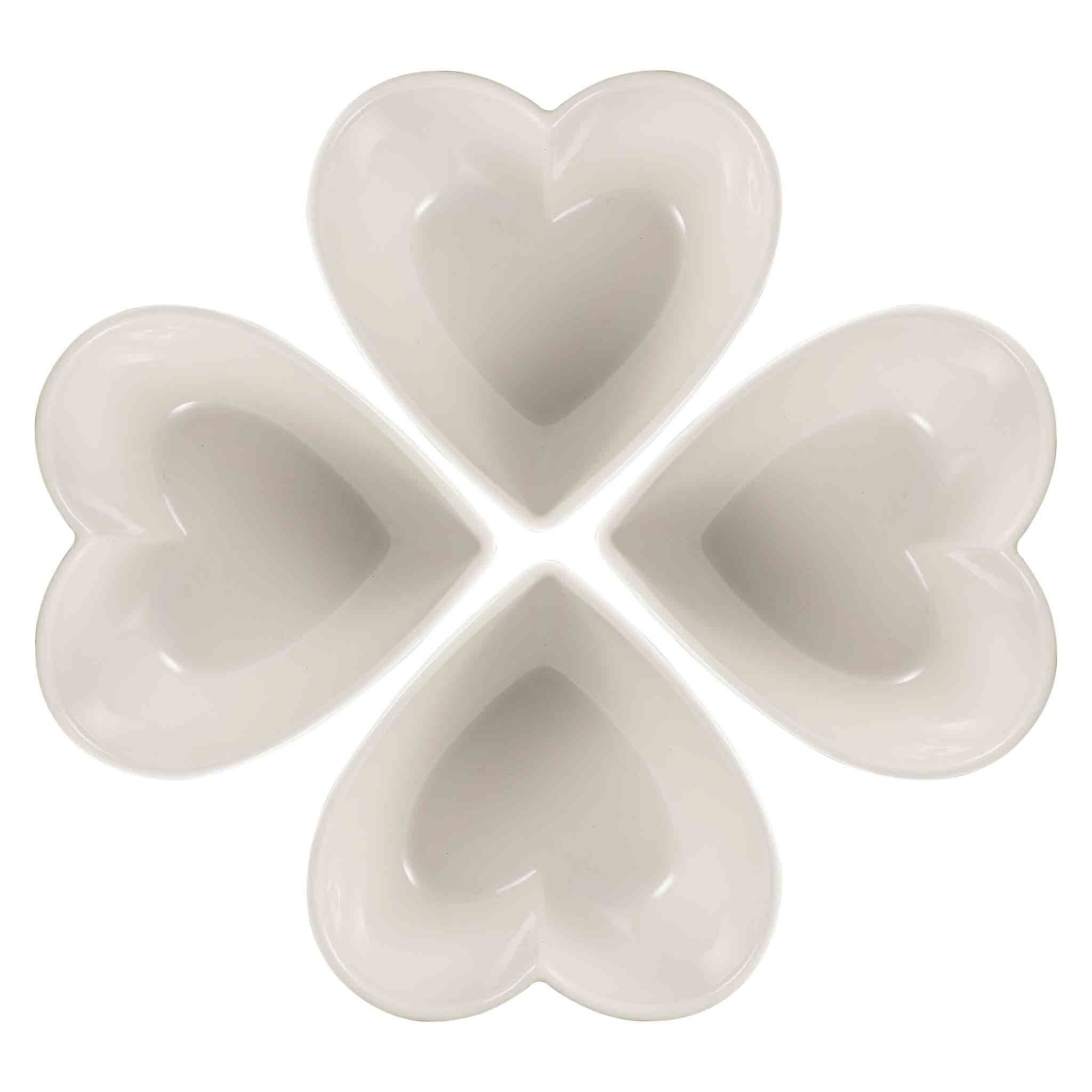Dette nydelige skålsettet består av hjerteformede skåler som sprer både glede og varme på bordet. Perfekt til servering av snacks, nøtter eller smågodt, eller bare som en søt dekorasjon.